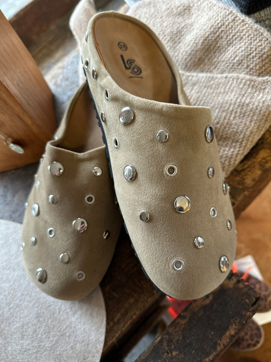 Nietenschlappen Beige