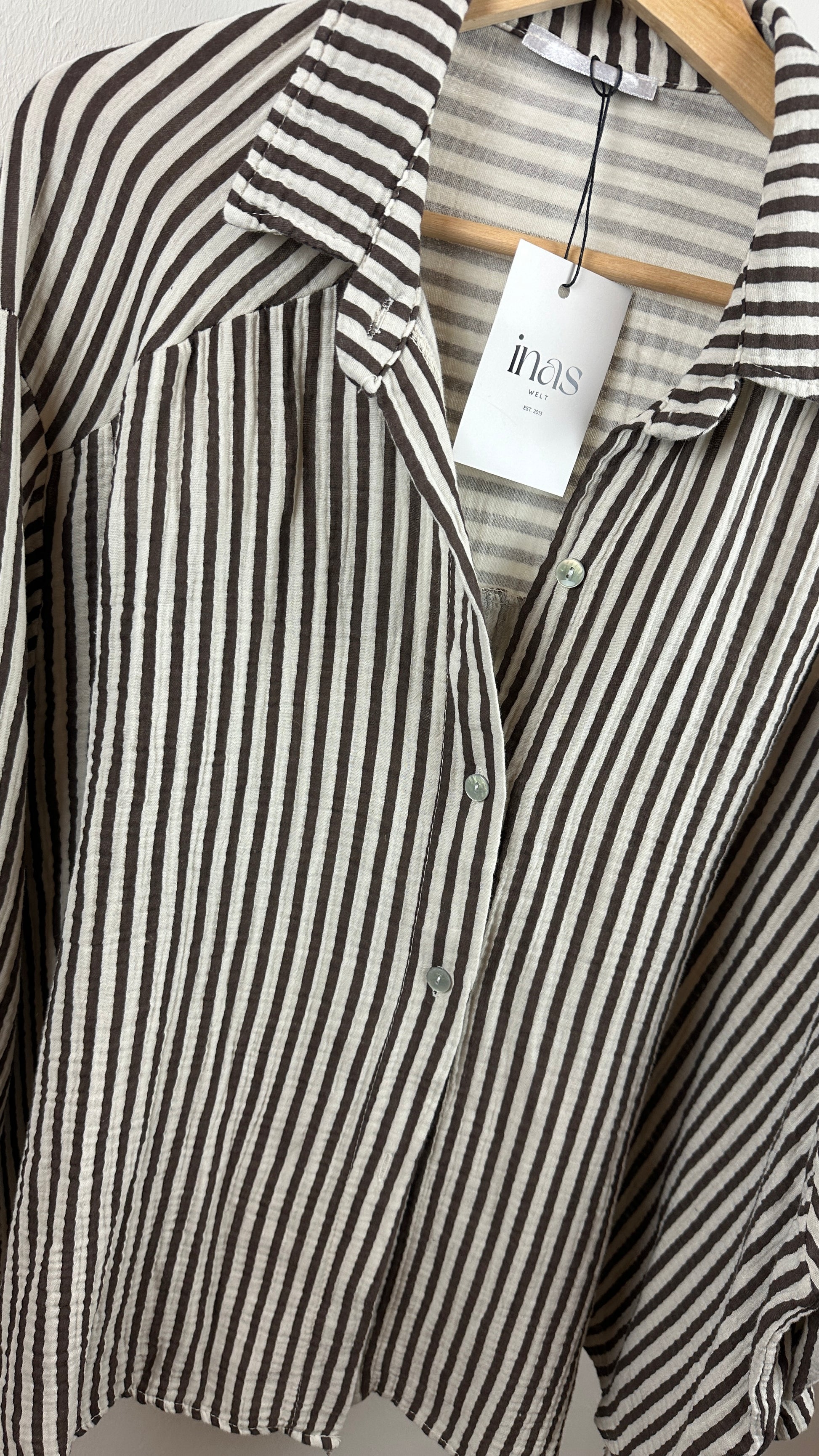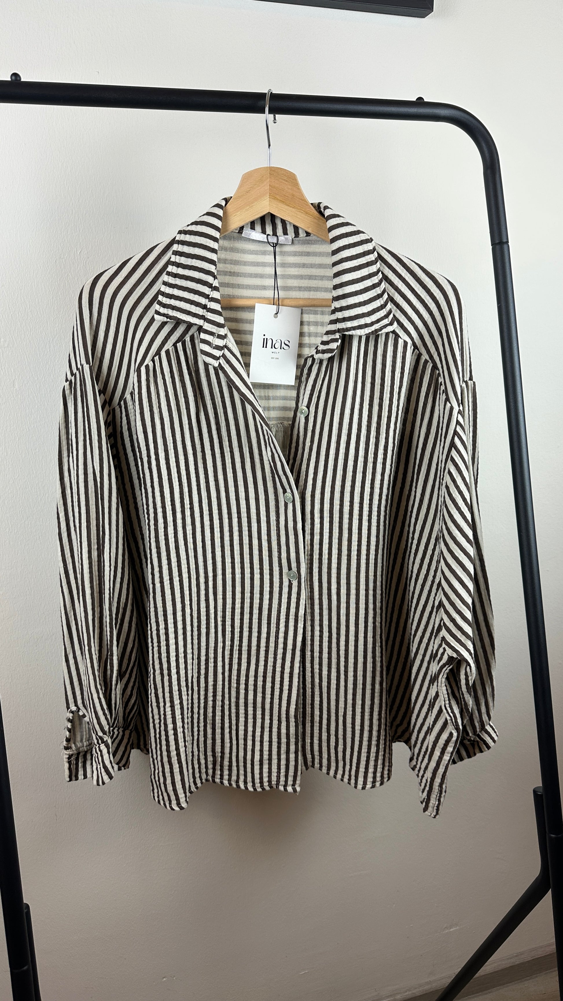 - cooles Musselinhemd mit schmalen braunen Streifen