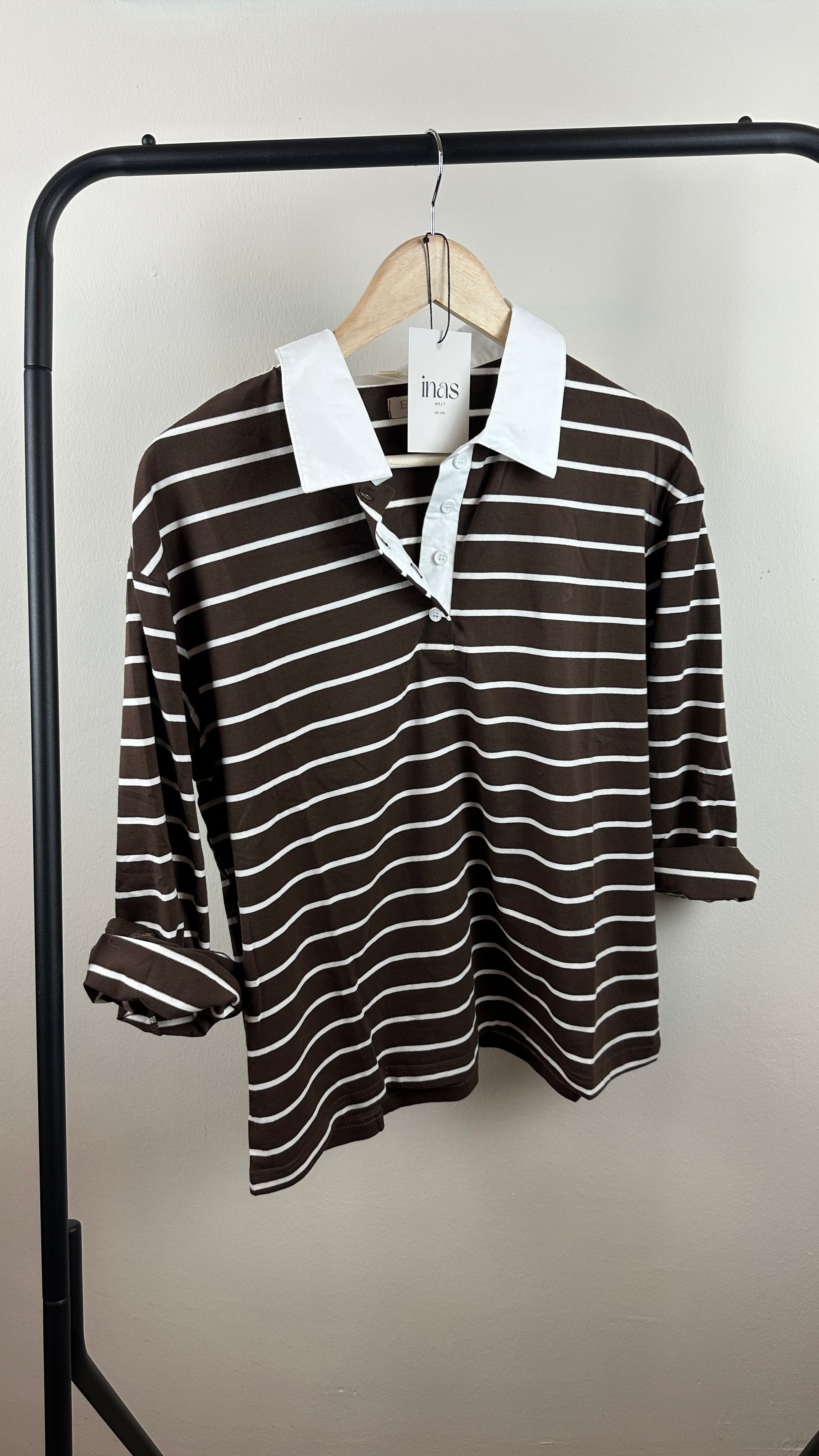 - cooles Poloshirt in Braun mit Weiss gestreift